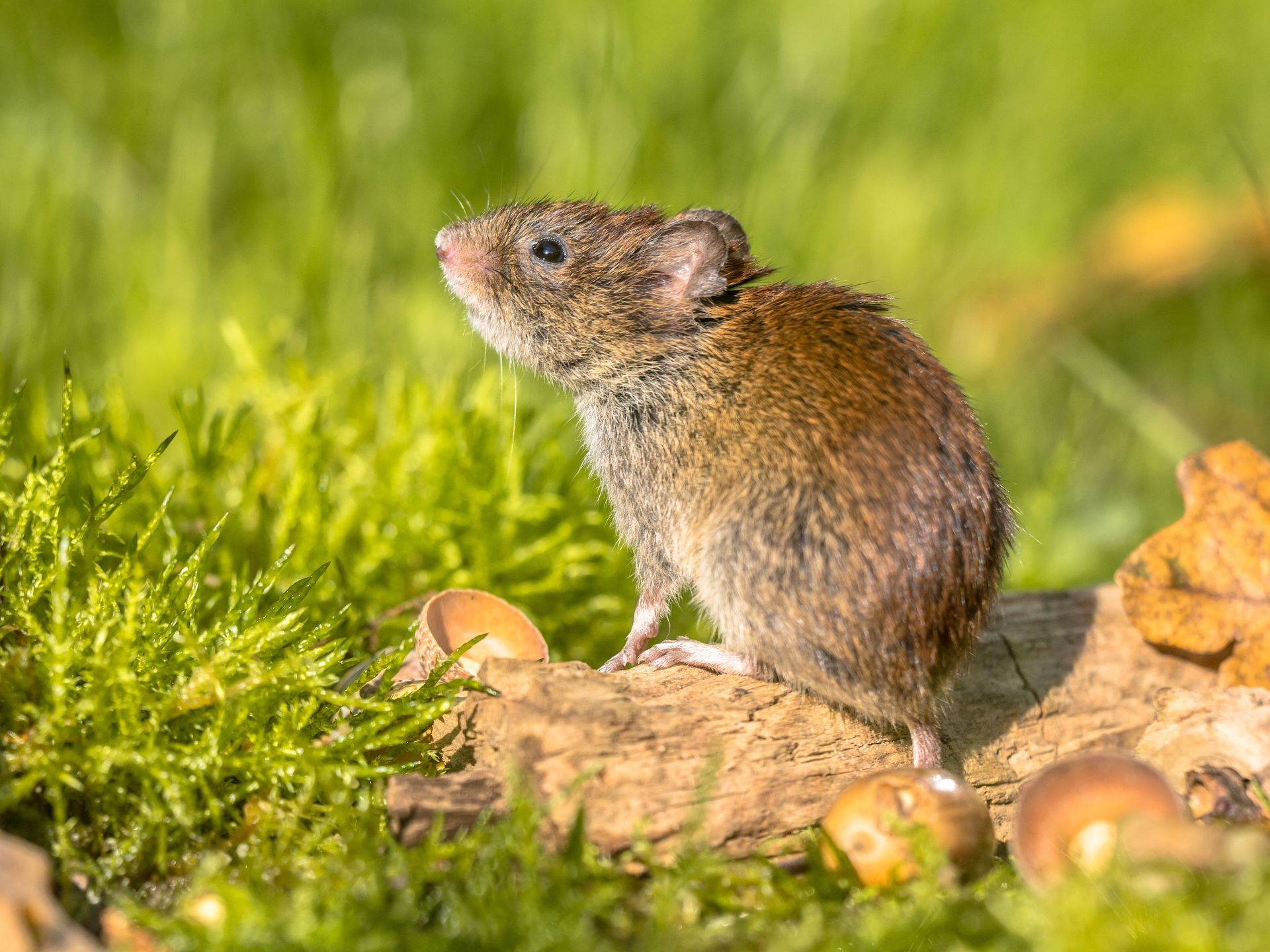 Voles are small, stout rodents that create shallow runways in grass and feed on roots, bulbs, and bark. They are active year-round, often under snow cover, and use burrow entrances with small soil openings. Dense vegetation and ground cover provide protection from predators.